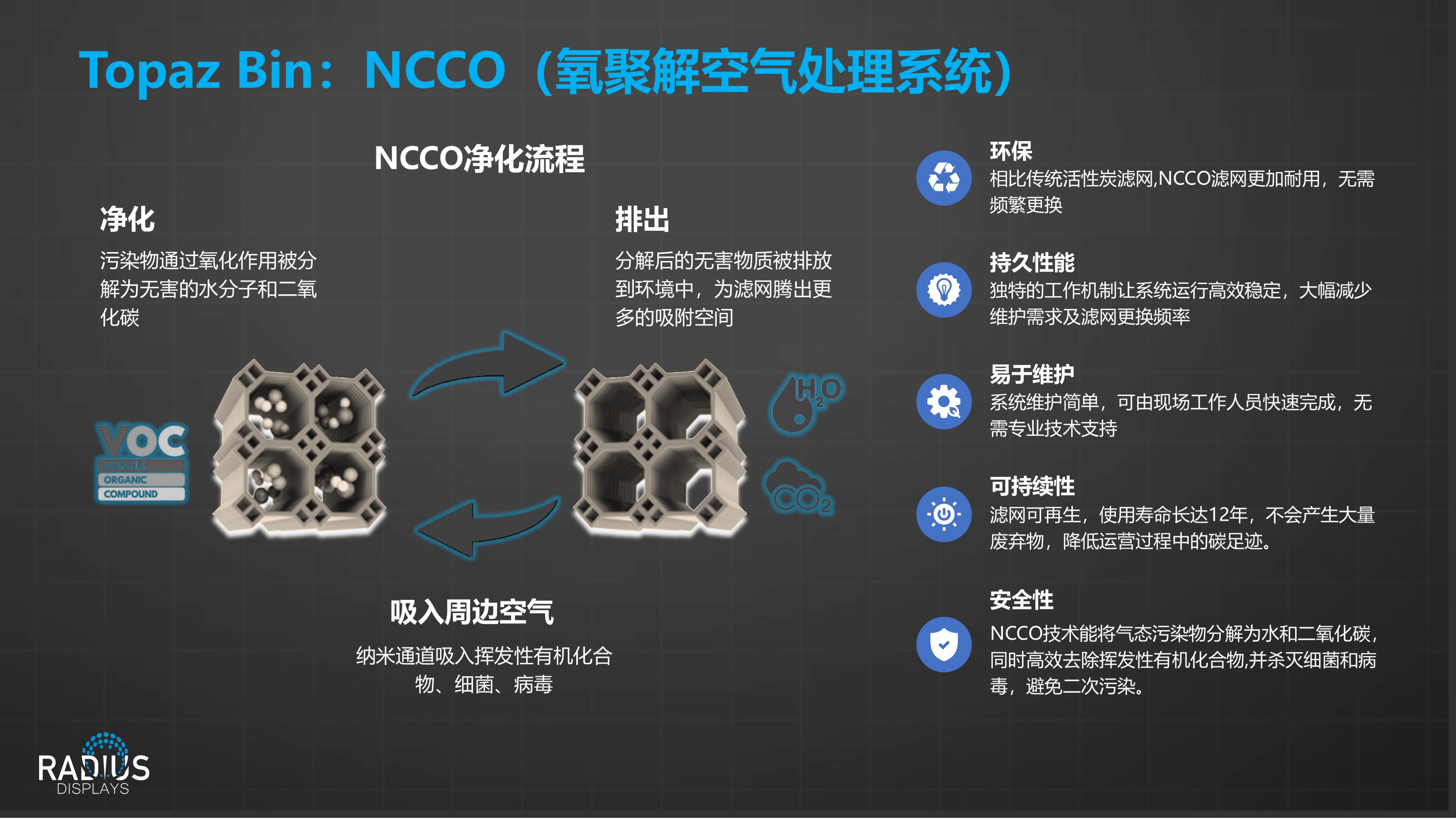 在环保法规收紧与消费体验升级的双重驱动下,垃圾异味早已从小困扰升级为行业难题。Topaz Bin 是一款革命性的智能环保回收箱,集成了NCCO高效除异味技术、太阳能供电系统和LCD广告屏,既能去除异味提升环境体验,还能通过广告屏创造额外收入。